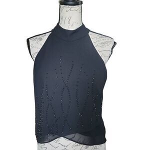 - JR Nites by Caliendo Ladies Black Strappy Beaded Halter Top Size 10