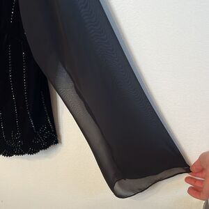 J.R. Nites flared sheer long sleeve button up velvet rhinestone top size 14