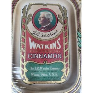 Whether you're a culinary connoisseur, a spice collector, or a lover of vintage memorabilia, this J.R. Watkins Pure Ground Cinnamon 5pc Tin Tray Set is a rare gem that encapsulates the essence of timeless craftsmanship