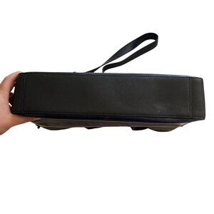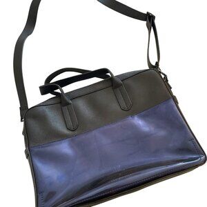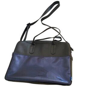 JR x Uri Minkoff Fulton Brief Case Bag Purse Black Metallic Chrome Blue Leather