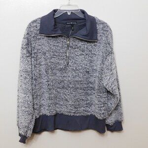 JR371 Derek Heart Trendy Gray Plus Size Zip-Neck Faux-Sherpa Sweater Size 1X