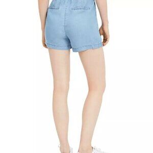 JR377 Numero Blue Juniors' Chambray Cotton Paperbag-Waist Shorts Size M