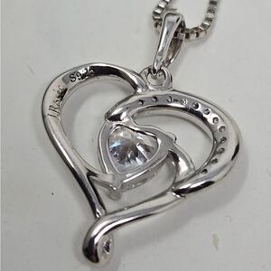 Sterling silver CZ heart pendant necklace hallmarked J. Rosee and 925. The necklace measures 18" with a 2" extender and is finished off with a spring clasp. It weighs 3.52 grams. There is some normal sterling patina present. Please see all photos as this is the exact piece you will receive. Thank you so much for looking I am always open to reasonable offers. Have a fantastic day!