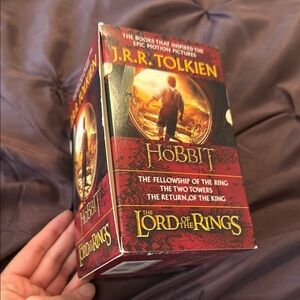 Boxed set of J.R.R. Tolkien's The Hobbit and The Lord of the Rings trilogy. Includes The Fellowship of the Ring, The Two Towers, and The Return of the King. Perfect for fantasy lovers.