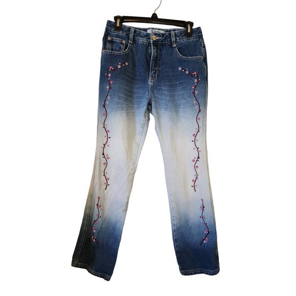 JRS.COM Straight Leg Faded Flower Applique Jeans Size 9/10