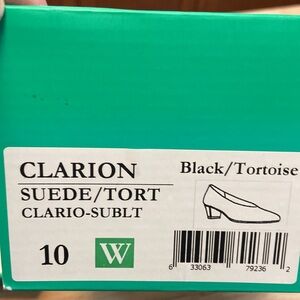 J.Reneé Black Suede Pointed Toe Heels 10W Tortoiseshell Block Heel