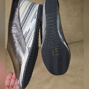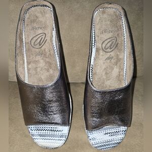J.Renee Abrielle Taupe Metallic Wedge Slip On Slide Shoes Size 9.5M NWT