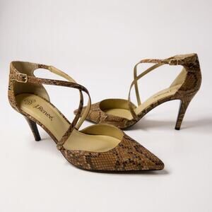 J.Renee Alfie Snakeprint Dark Taupe Strappy Pointed Stiletto Heels Size 9.5