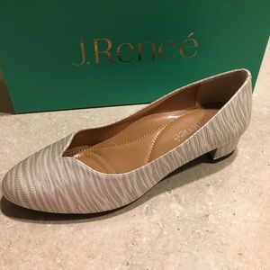 NWT J. Renee Bambalina Lizard print shoe Size 8N, color Dove Gray Metallic