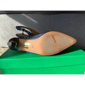 Elegant blue heels with sparkling sequins. Slingback design. Perfect for special occasions.