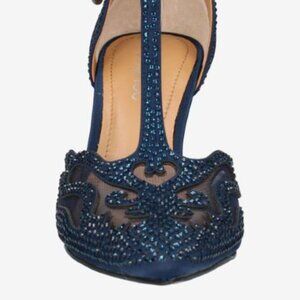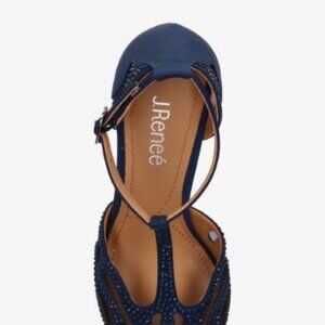 J.Renee LISHA Navy Embellished Heels T-strap Size 9.5