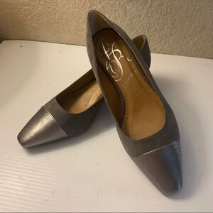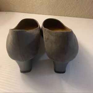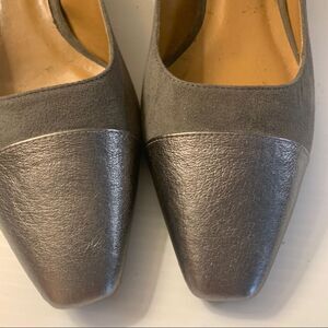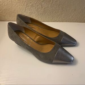 J Renee’ Pewter Cap Toe and Suede Short Block Heel Pumps