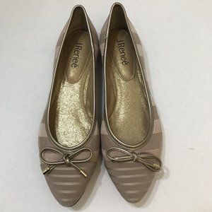 J.Renee’ Striped Fabric Almond Toe Flat w/ Bow