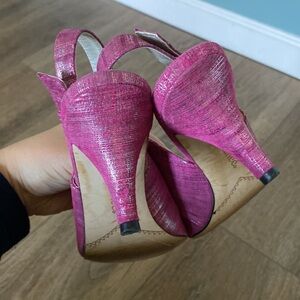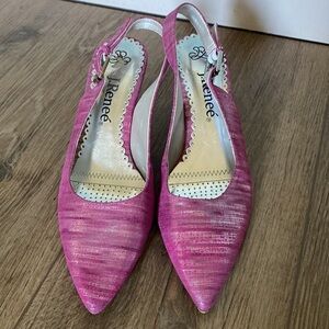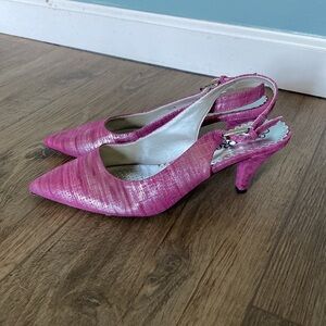 J.Renee pink metallic thread textile sling back pumps. Point toe Y2K Barbiecore