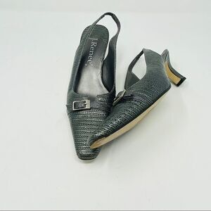 Beautiful slingback heels in style “Jackie” from J. Renee! These are a shiny grey color; almost pewter. These shoes are in excellent condition, with just some wear on the soles. Size 7! Please see pictures.