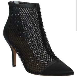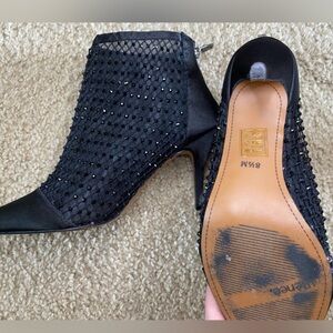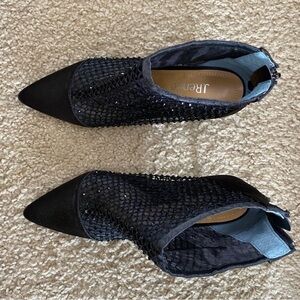 J.Renne Sosian Black Mesh Fishnet Rhinestone Pointed Toe Stiletto Boots Size 8.5