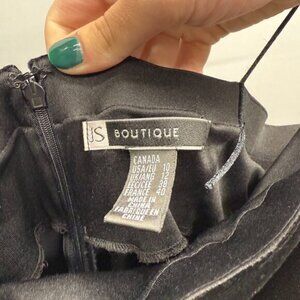 Women's vintage JS botique black velvet floral applique floor length gown. Excellent condition. Size 10. Pit to pit: 17". Total length from pit: 49.5".