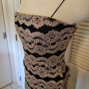 JS Boutique Black Gold Embellished Bodycon Dress Women's Size 4 Satin Strap