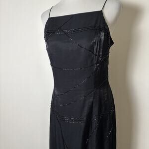 JS Boutique Black Shimmer Beaded Maxi Dress Size 8 Strappy Whimsigoth Formal