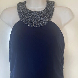 JS Boutique Blue Beaded Sequin Collar Halter Dress Ruched Womens Size 8 (43)