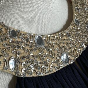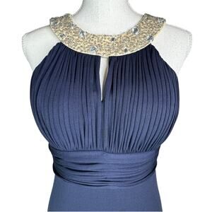 JS Boutique Halter Gown Maxi Dress Beaded Collar Keyhole Mermaid Hem Navy Blue 6