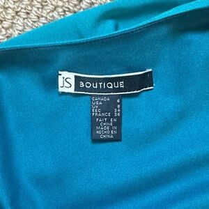 Turn heads in this stunning JS Boutique ombré one-shoulder dress! Featuring a gorgeous gradient of teal to deep turquoise, this dress drapes beautifully across the body for a flattering, sophisticated silhouette. The asymmetrical neckline and flowy overlay add an effortlessly chic touch, perfect for weddings, cocktail parties, or any special occasion. The stretchy, comfortable fabric hugs your curves while offering easy movement.