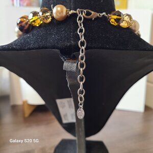Add a touch of elegance to your outfit with this beautiful beaded bib necklace from "JS" Collections. The necklace is 14 inches long and features a lovely flower-shaped pendant in brown color. The lobster closure ensures that the necklace stays securely in place while the adjustable feature allows for a comfortable fit. Perfect for any occasion, this necklace is a great addition to your jewelry collection. Whether it's for an engagement, Mother's Day, anniversary, or birthday, this necklace is sure to make a statement. The necklace is preowned but has been well taken care of. Get this stunning piece now and add a touch of beauty to your outfit.