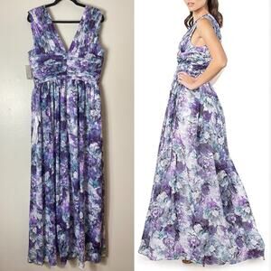 JS COLLECTIONS DRESS L PURPLE FALL WEDDING GUEST LONG FORMAL FLORAL JACLYN MAXI