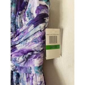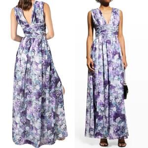 NWT JS COLLECTIONS WEDDING GUEST DRESS L JACLYN FLORAL MAXI LONG GOWN VIOLET PURPLE FIT & FLARE