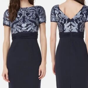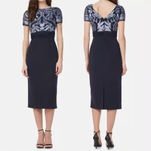 JS COLLECTIONS Navy Blue Mixed Media Soutache Midi Dress Size 12