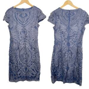JS COLLECTIONS SOUTACHE Ribbon Lace Mesh Stretch Sheath Dress - Good Condition faint mark on the front , see all pictures!