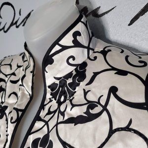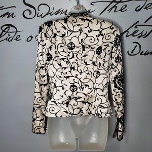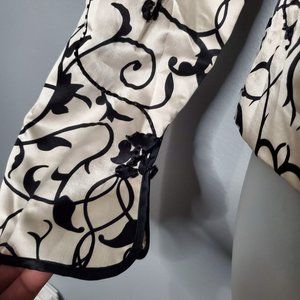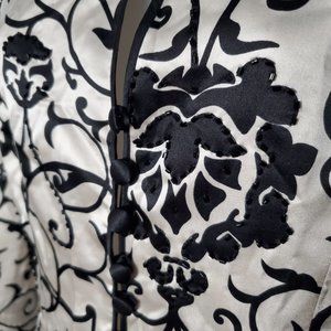 JS COLLECTIONS Silk Womens Black & White Jacket With Mandarin Collar & Beading