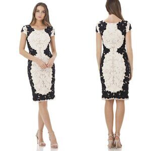 JS COLLECTIONS Soutache Sheath Lace Cap Sleeve in Navy & Cloud Dress. SZ 4