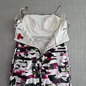 The dress features a stunning floral pattern with a bodycon style that flatters the silhouette, ending just above the knee in a playful mini length. The spaghetti strap sleeve style adds a touch of allure, while the layered accents and stretch fabric ensure a comfortable fit that moves with you.
