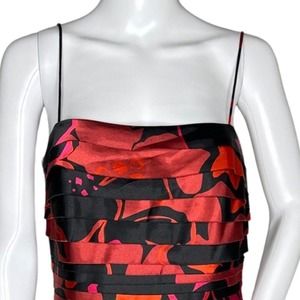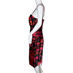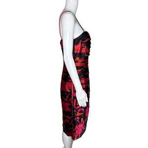 JS Collection Dress Womens 8 Red Pink Black Sheath Dress Shutter Pleats Preppy