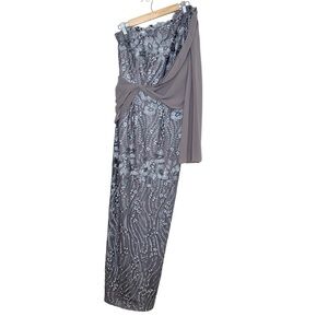 JS Collection Size 4 Grey One-Shoulder Overlay Gown