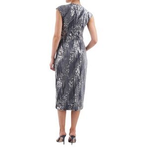 JS Collection Gray Faux Wrap Velvet Sequin Midid Dress