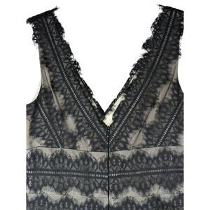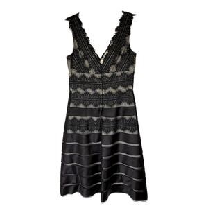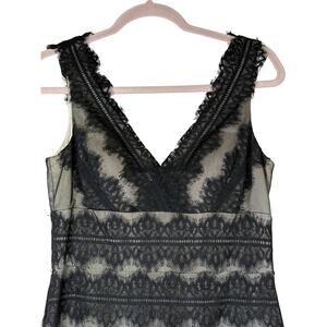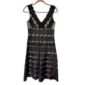 JS Collection Petite Black Lace & Satin Overlay Fit & Flare V-neck Dress Size 6P