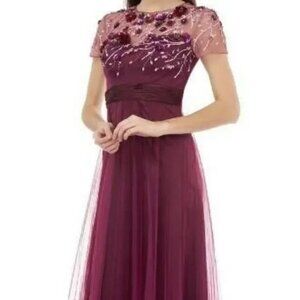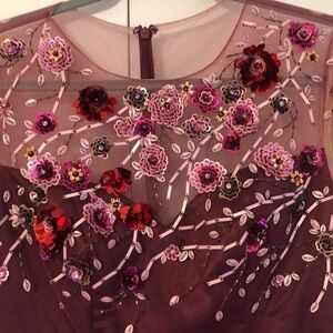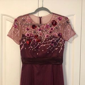 JS Collection burgundy sequin floral beaded maxi fairy dress size 4. It has a lightly padded bra area. The approx measurements are armpit to armpit is 17 inches and the length from shoulder to hem is 58 inches. It is in great condition.