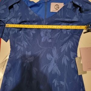 JS Collection Wedding Guest Trinity Floral Blue Dress Cape Sleeve NWT