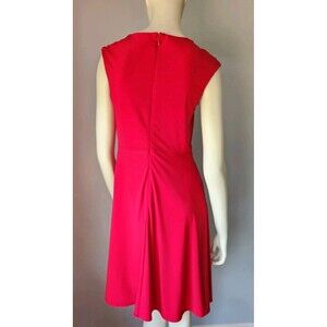 JS Collection Women's 8 Ruche Red Cocktail Dress - sz 8. Gently pre-owned in good condition. Light faded mark, near zipper, pointed out in photo. Does have bra strap holders built in.