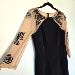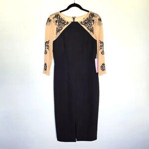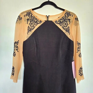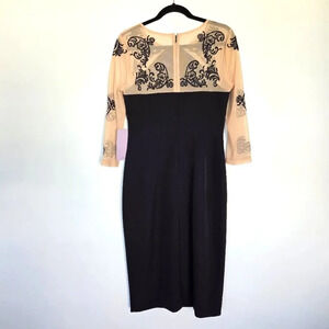 JS Collection Women's Cocktail Dress 8 Black Nude Embroidered Wedding Classic