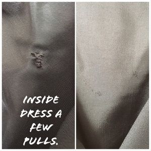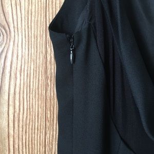 ❤️ CLEARANCE ❤️JS Collection Black floor length dress. No sleeves. Has a mesh dip in the back and a side zipper. Has a few snags as shown in pictures. Size 8.