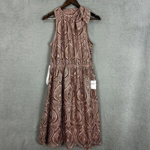 JS Collection dress women 8 beige latter halter midi lace embroidered party NWT