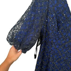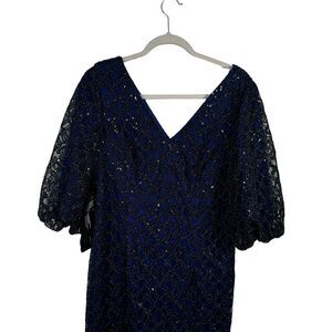 JS Collections Adeline Cocktail Midi Dress Dark Midnight Navy Blue NWT Womens 8