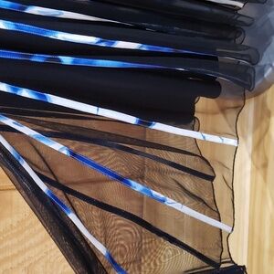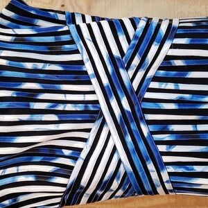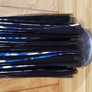JS Collections Black Blue White Print Ribbon Stripe Sleeveless Dress Size 6