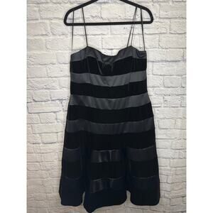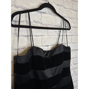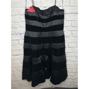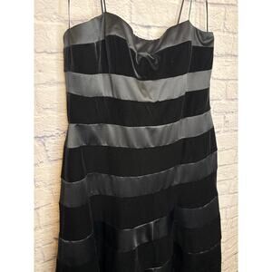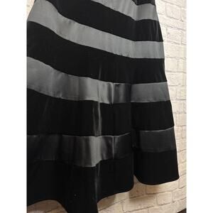 JS Collections Black Formal Fit & Flare Midi Dress Satin/Velvet Stripes, 14 NWT