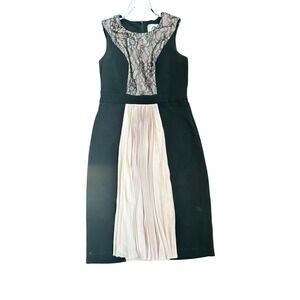 JS Collections Black Pink Lace Pleated Maxi Gown Formal Evening Dress