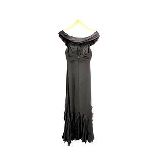JS Collections Black Ruffle Halter Maxi Dress Sz 4 Cocktail Whimsigoth Prom