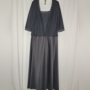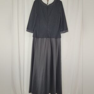 JS Collections Black Subtle Sparkle Top Satin A-Line Skirt Maxi Gown - Size 16